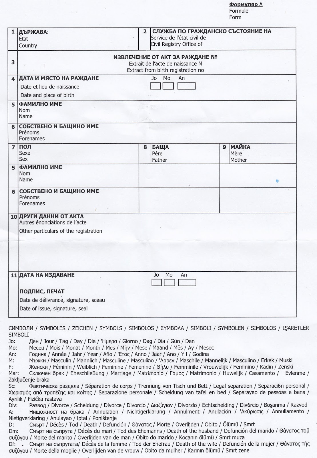 Резултат от услугата:Заявителят получава многоезично извлечение от съответния акт за гражданско състояние.