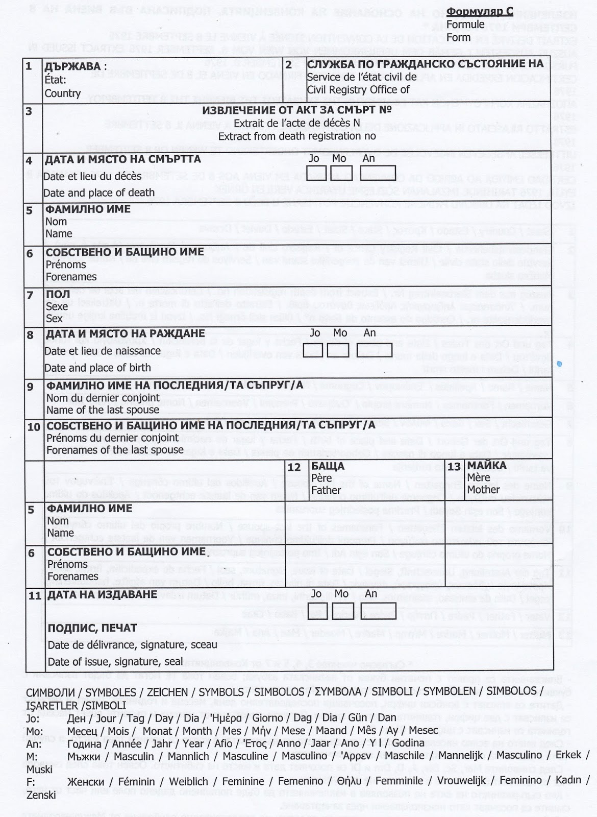 - При заявяване на многоезично извлечение от Акт за смърт - наследниците на починалото лице от акта за смърт, законните им представители.