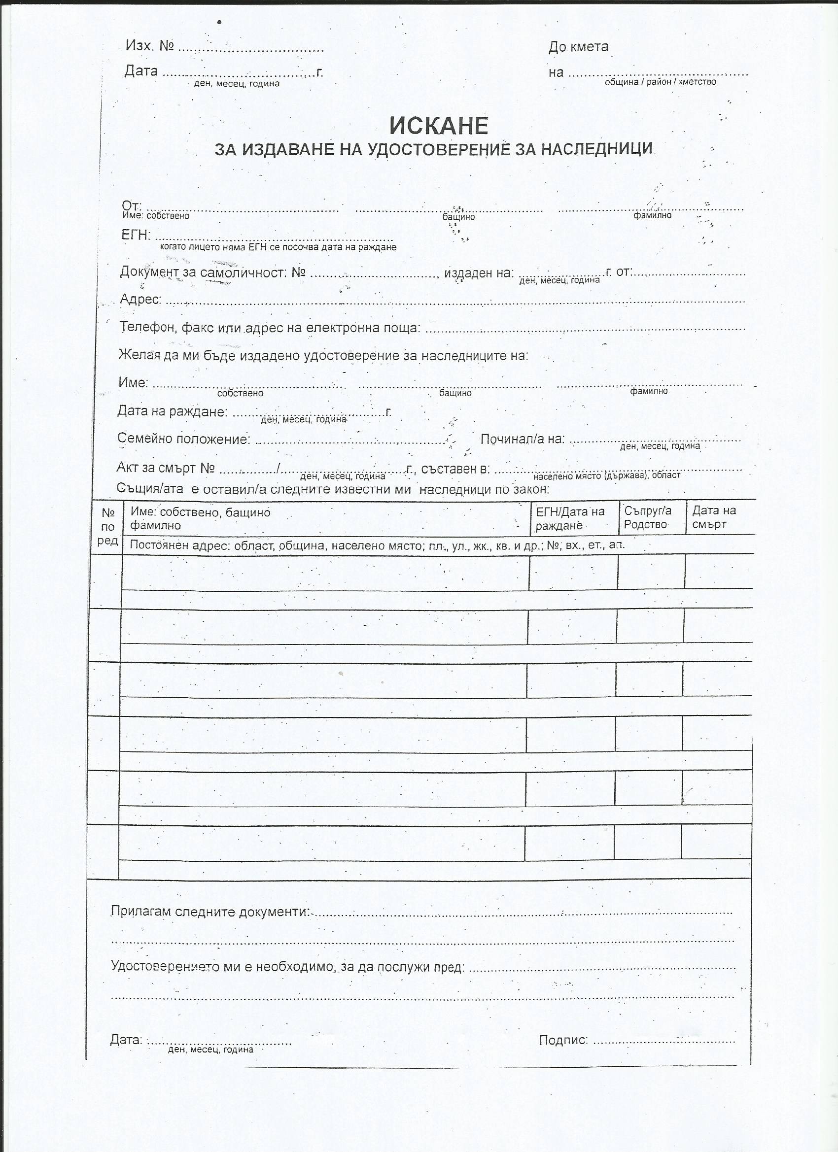 • 2016 Издаване на удостоверение за наследници
