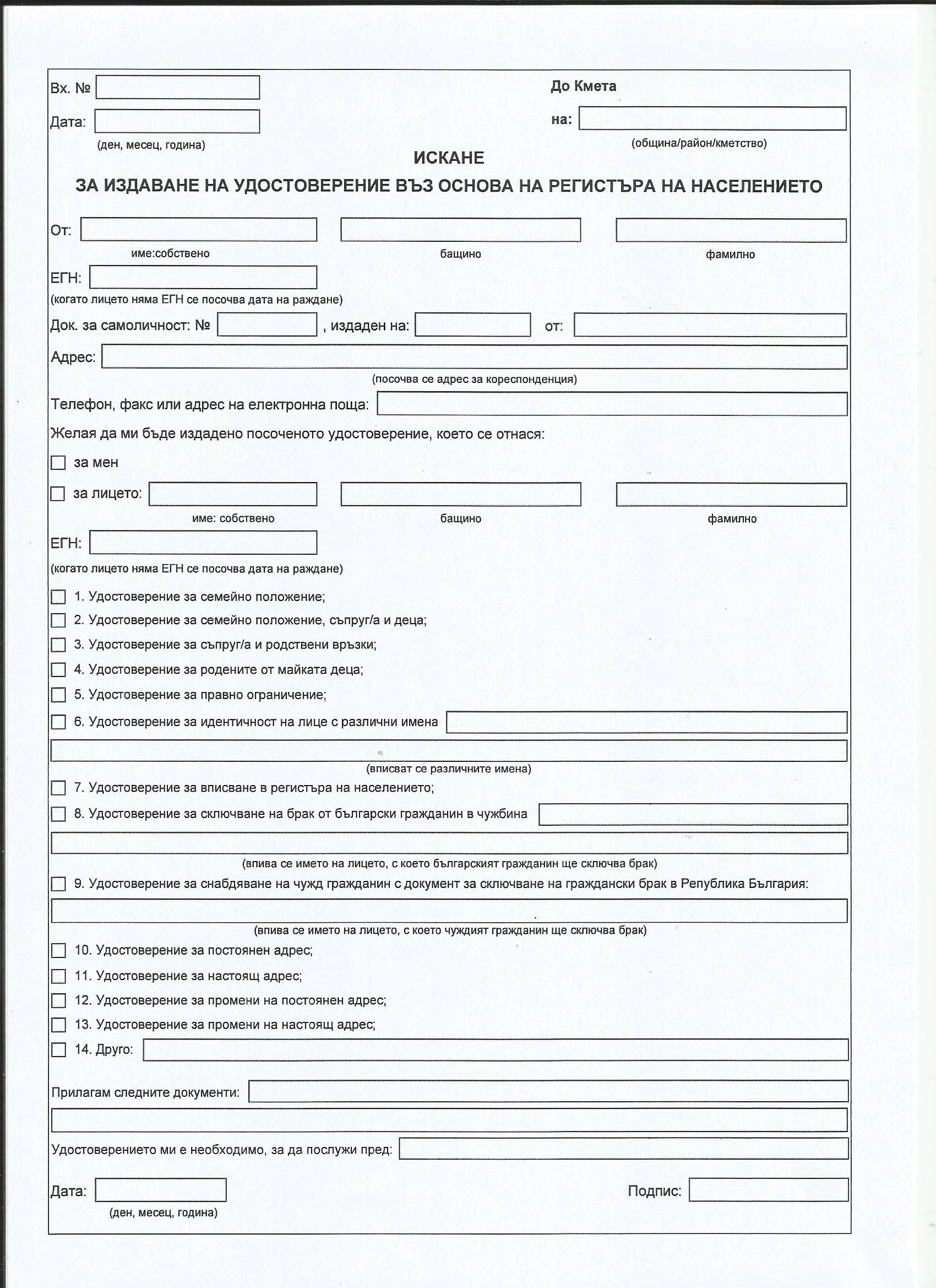 • Наредба № РД-02-20-6 от 24.04.2012 г. за издаване на удостоверения въз основа на регистъра на населението - чл. 20