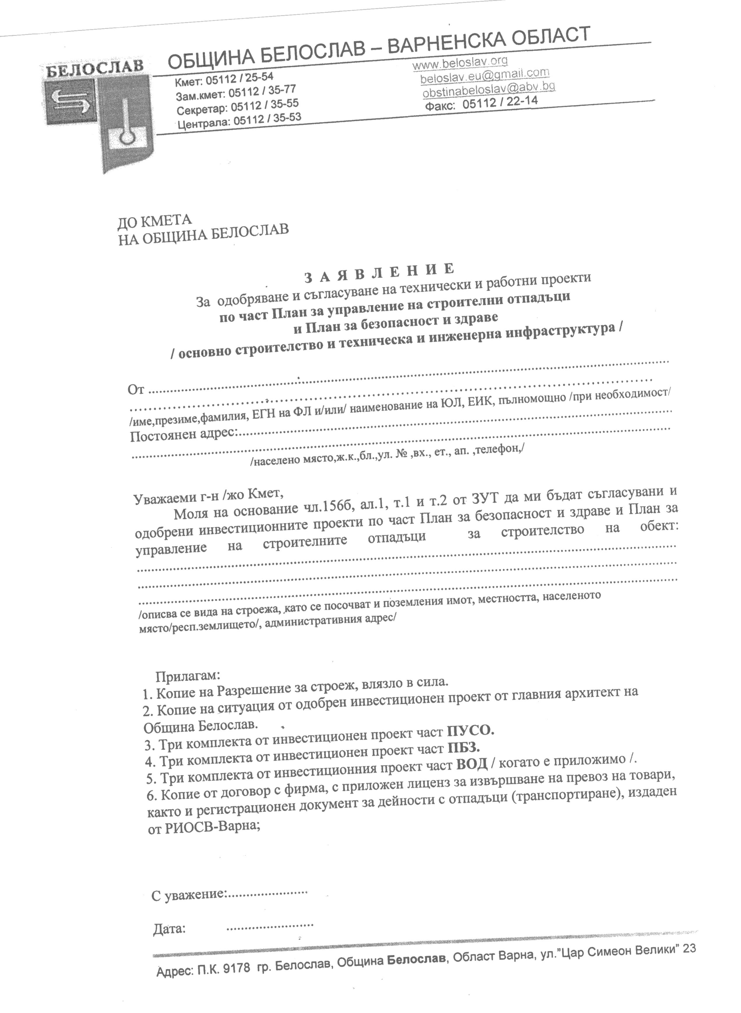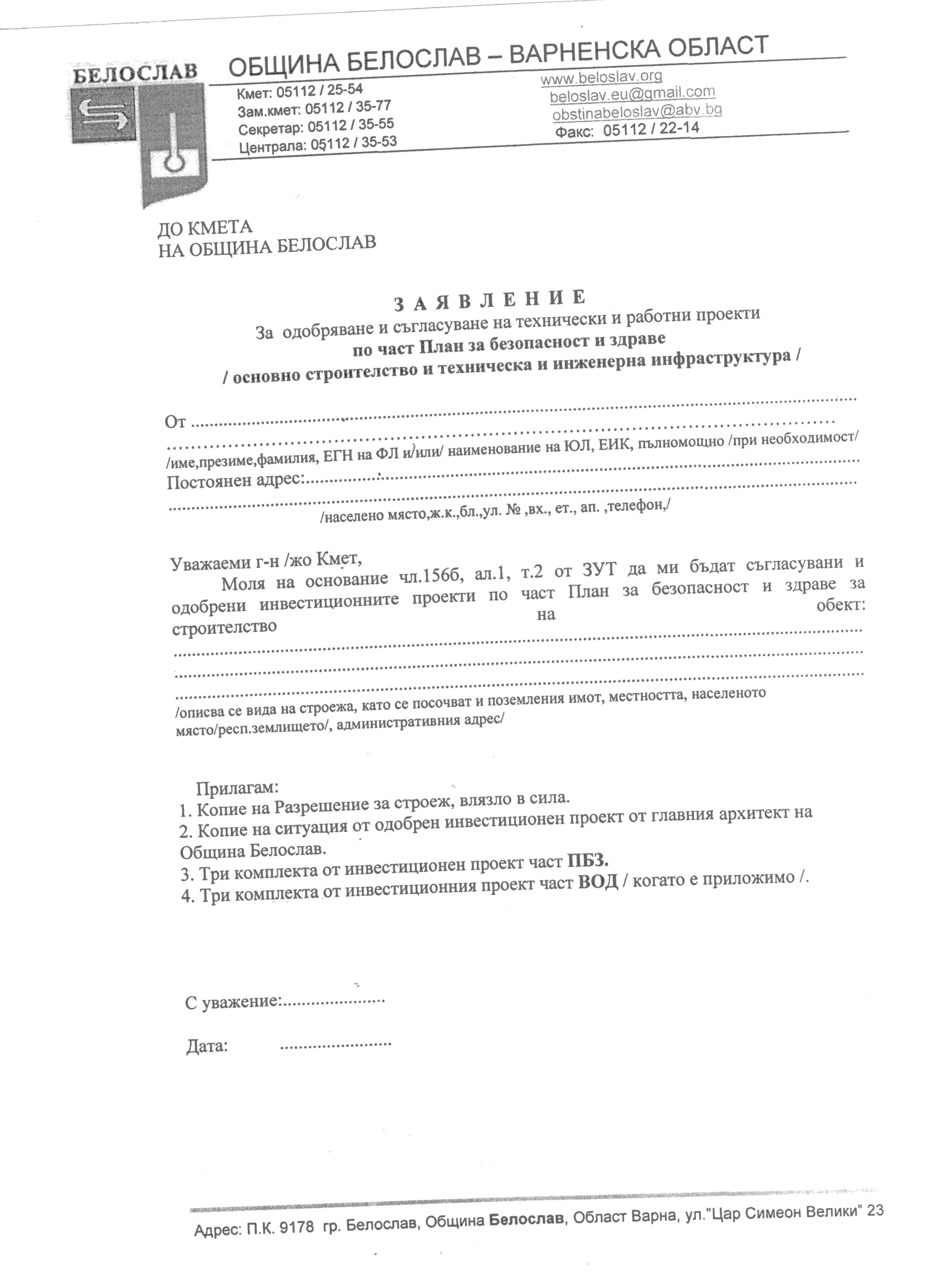 Необходими документи: Заявление по образец и.